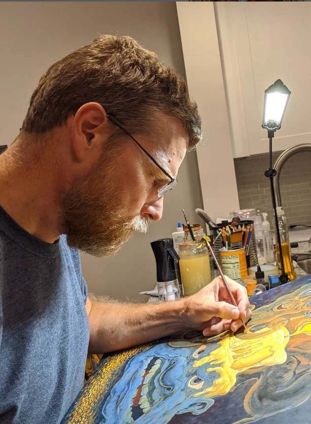 From life experiences and the need to tell mysteriously strange stories, I have found many influences to creap in such as the masters from the past to iconic imagery that flows through our many cultures. The reliance on images that flow through my mind are the most influencial. You may find hints of Bosch, Escher, Dr, Suess, Mort Drucker, Dali, and many more.